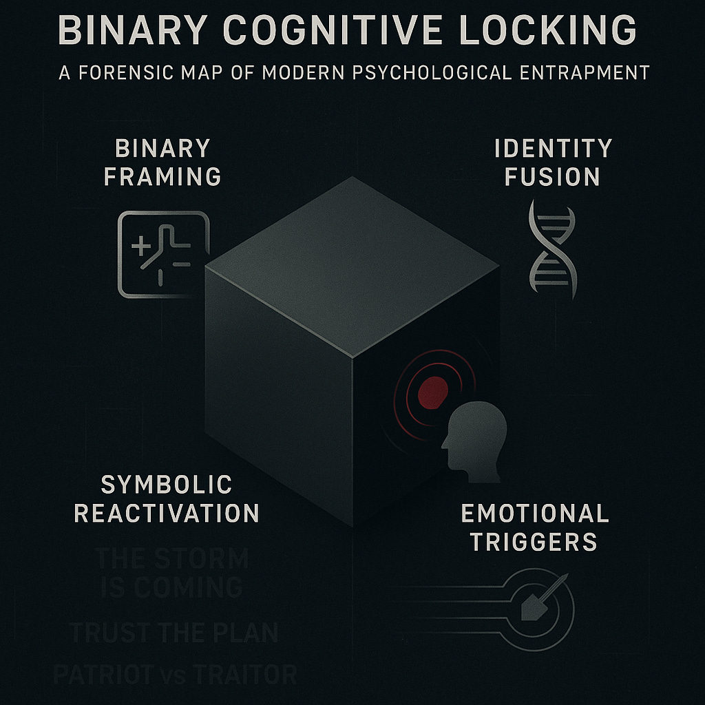 At the center of this analysis is a psychological framework we’ve named Binary Cognitive Locking (BCL). This is not a theory. It’s not speculative. It’s a forensically derived model, backed by military doctrine, cognitive science, cult deprogramming research, and behavioral conditioning evidence. BCL is what happens when your brain is trained to think in only two directions.