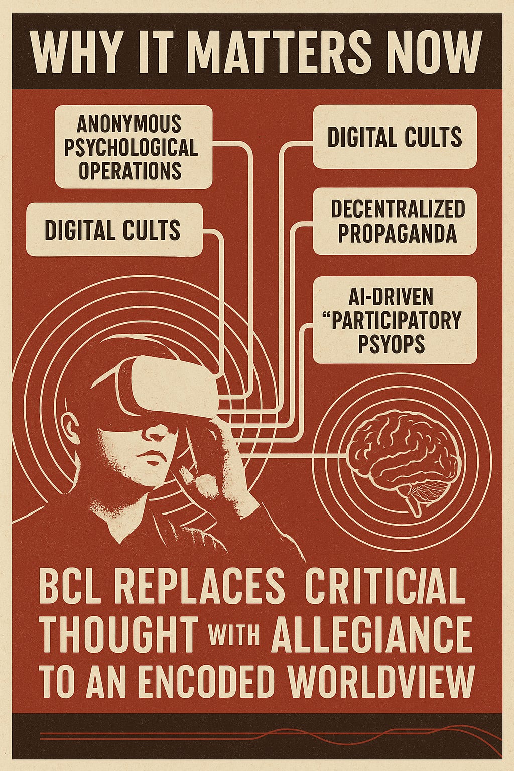 BCL captures this effect as a digitized evolution of classical indoctrination, where belief is gamified and identity becomes indistinguishable from allegiance.