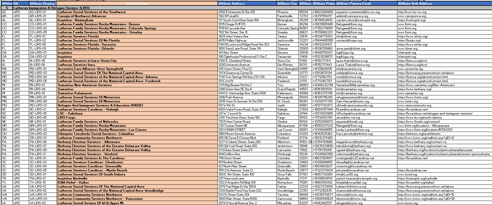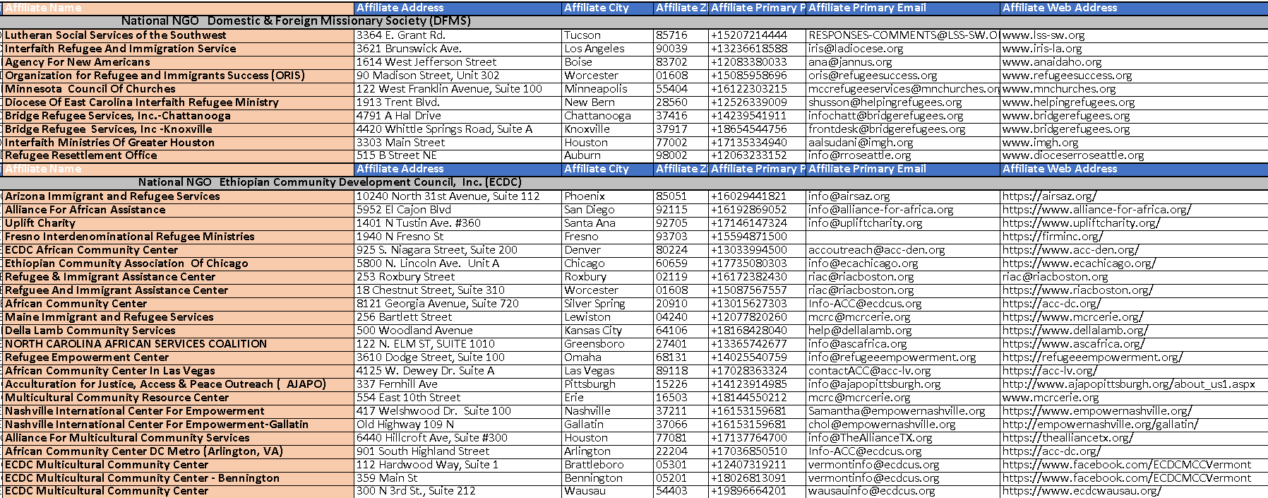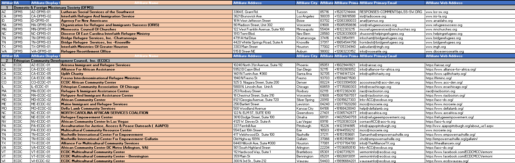 Local Affiliate NGO Totals 2022, 2023, 2024