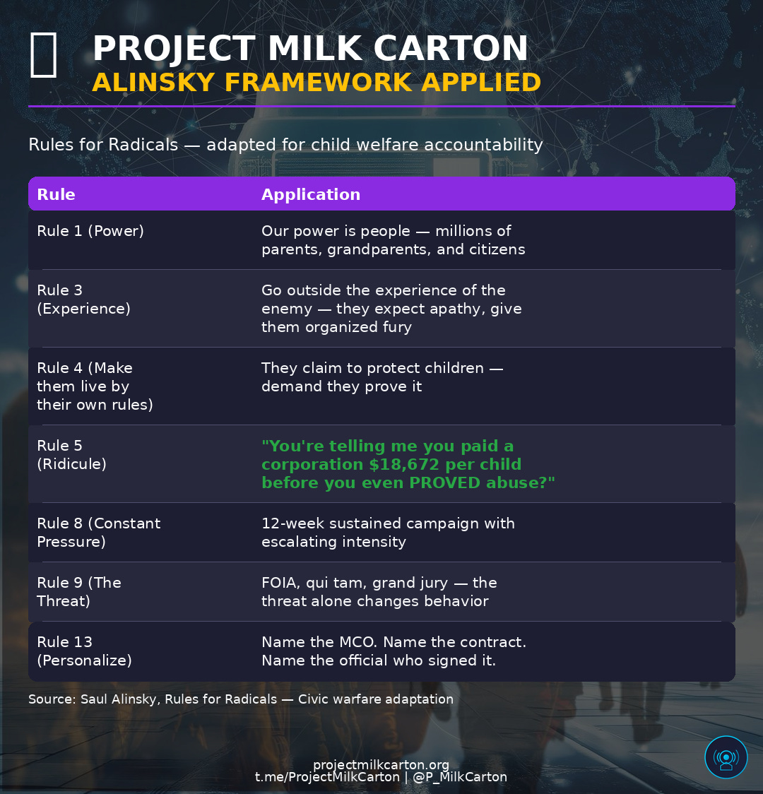 Rule 5 (Ridicule): "You're telling me you paid a corporation $18,672 per child before you even PROVED abuse?"