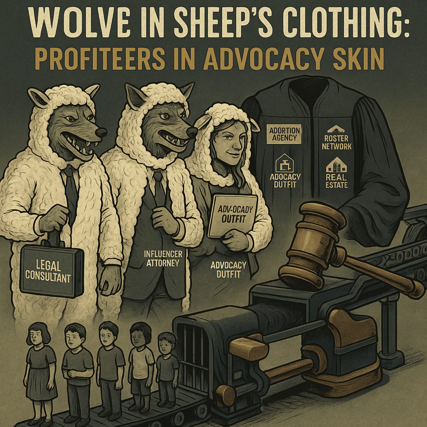 Alongside the black robe conveyor belt, a new category of actor has emerged—entities that claim to expose CPS while simultaneously profiting from its continued dysfunction. These are the legal consultants, influencer attorneys, and advocacy outfits who provide partial truths—highlighting surface-level abuses of CPS while offering expensive legal packages, document kits, or subscription services to desperate parents.