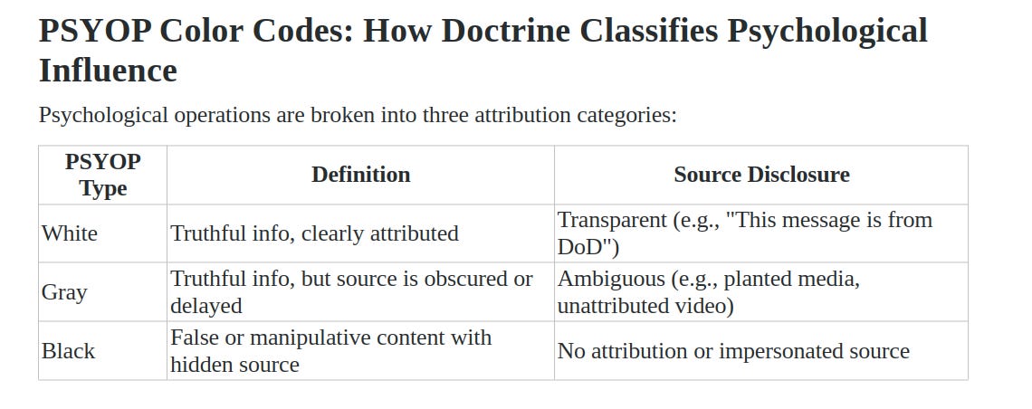 PSYOP Color Codes: How Doctrine Classifies Psychological Influence