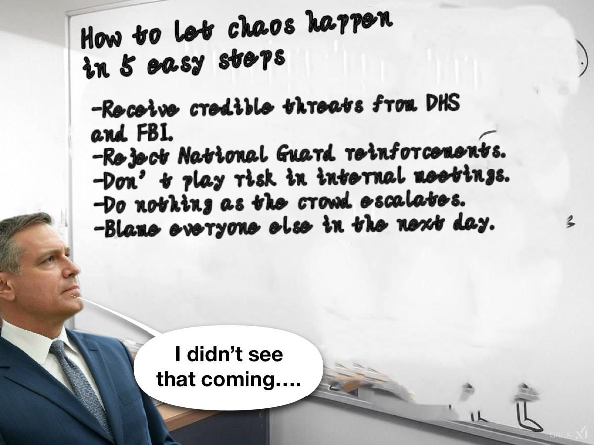 If we’re going to hold people accountable, we need to be specific.We need to understand—a government that’s actually trying to protect its citizens doesn’t "fail" at every level simultaneously. They don’t ignore intelligence. They don’t block security reinforcements. They don’t let an event unfold when they have the power to stop it. And they sure as hell don’t immediately weaponize their own inaction to justify mass arrests, censorship, and an expanded security state.