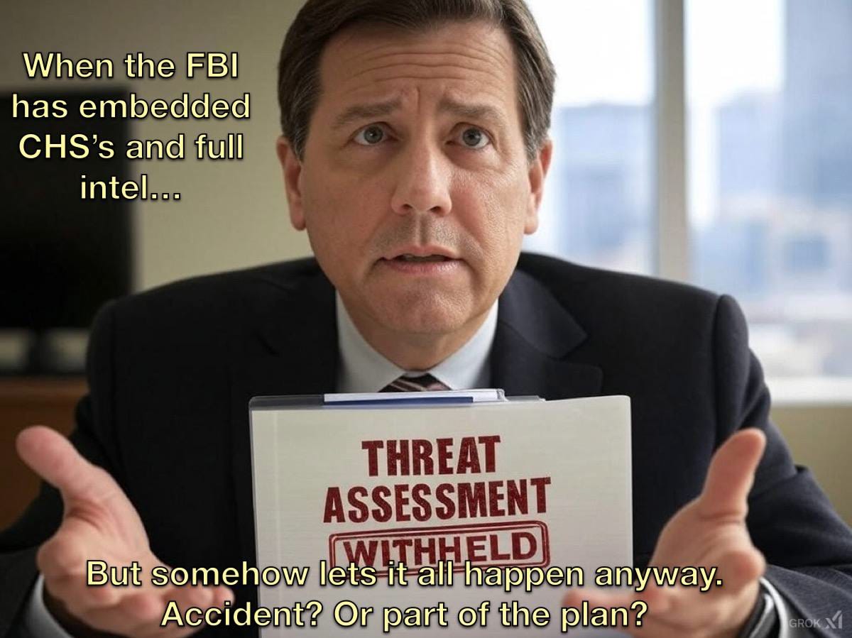This mirrors previous FBI failures (9/11, Parkland Shooting, Pulse Nightclub, etc.) where they had intelligence but failed to act.