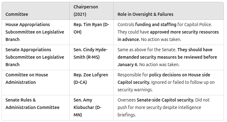 🔹 Key Congressional Oversight Committees (17+ Members with Direct Authority Over Capitol Police)
