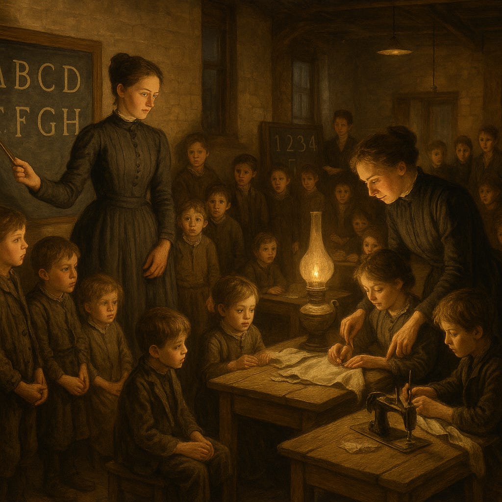 Industrialists adapted. They moved labor underground, off books, into family subcontracting. Reformers adapted too, creating institutions—juvenile courts, orphanages, and “industrial schools”—to contain and correct the very children they sought to protect. The problem had simply changed uniforms.