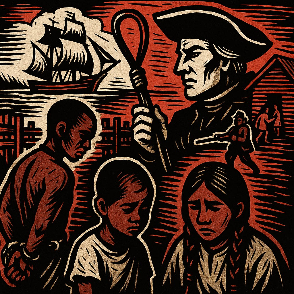 Childhood became a frontier commodity. Family separation—often spoken of now as a modern CPS sin—was foundational to the colonial economy. When colonists claimed to “civilize” Native youth through schooling or servitude, it was often an early form of cultural erasure disguised as moral uplift.