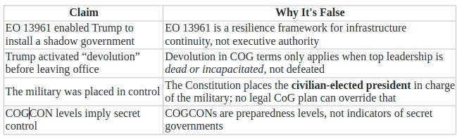 đĽ CLAIM #1: âTrump initiated a Continuity of Government (CoG) devolution plan before leaving office.â