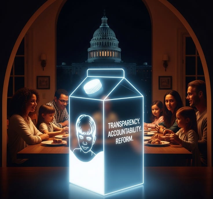 When families talk, when communities organize, when citizens force transparency, the cartel loses control. Project Milk Carton exists to connect these dots, to arm parents with facts, and to demand a system that values children’s lives over contracts and lobbying.