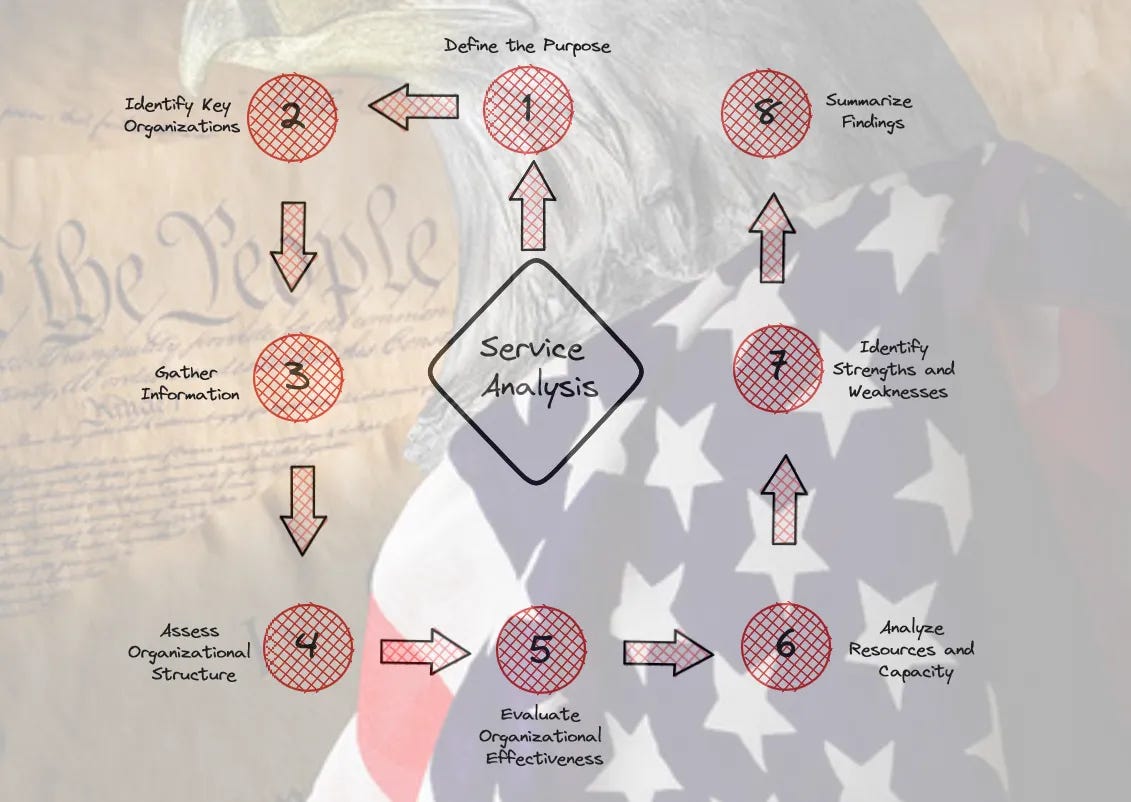 These frameworks, derived from our initial two steps, will enable us to conduct a thorough and systematic investigation into the operations of Libertyville's local government. This process works for any local government by utilizing specific analysis’s for certain frameworks and community and government dynamics.