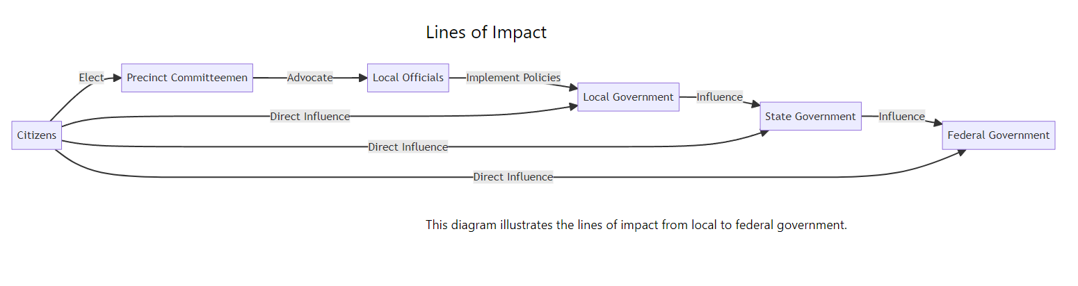 Power is exercised through action, creating lines of influence that can lead to significant lines of impact across all levels of government. The actions taken at the local level can ripple outwards, influencing policy and decision-making at the state and federal levels. And at the heart of this process are the citizens, whose engagement and advocacy can drive change from the ground up.